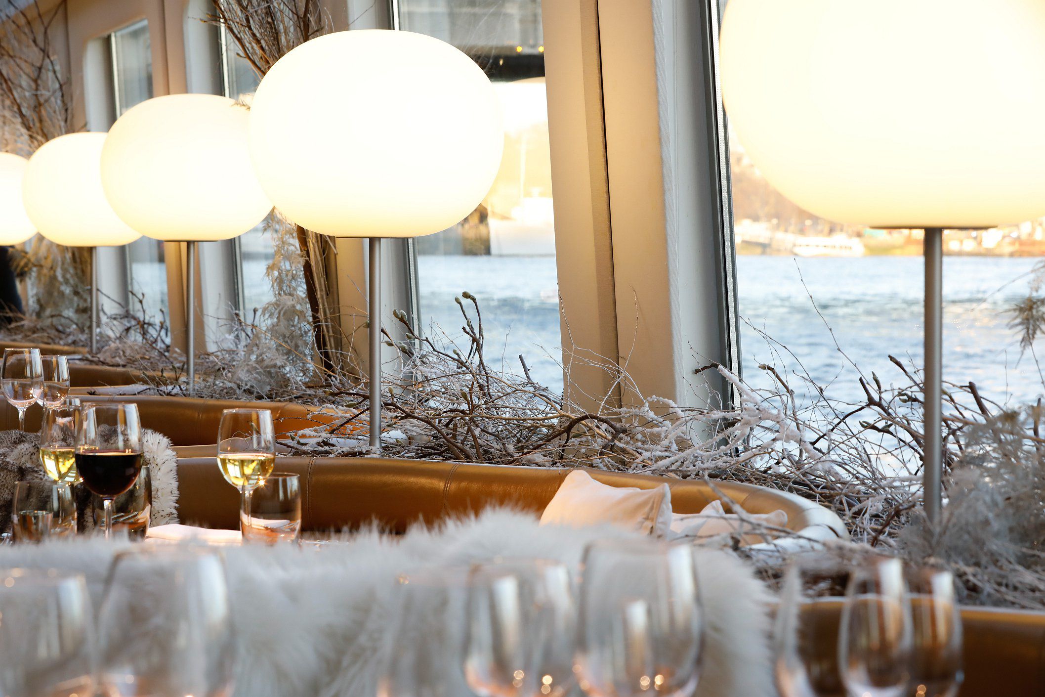 The Silver Sturgeon will be moored at Tower Bridge Quay beside Tower Bridge, with glasses of Veuve Clicquot Yellow Label Champagne as you step aboard at your table, or take in the panorama of London's shimmering river banks from the candle-lit, teak deck bar; interiors will feature sculptural winter displays and booth seats draped with soft faux fur throws.
